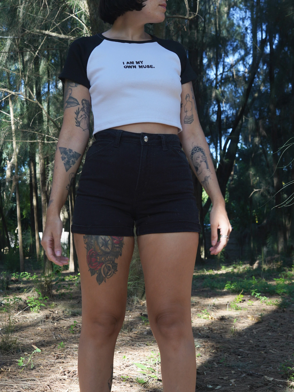 Crop top de Morley Gruesito, con mangas combinadas. 🌹